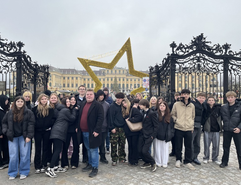 Předvánoční Vídeň jsme navštívili v rámci školního zájezdu, jehož cílem bylo poznat adventní atmosféru i významné památky města. Do rakouské metropole jsme vyrazili pohodlně soukromým autobusem, který nám zajistil bezproblémovou a bezpečnou dopravu. Zájezdu se zúčastnilo 53 žáků ze tříd KčCu1.B, KčCu3.A a KčCu3.B. Na organizaci a průběh akce dohlíželo 5 pedagogů. První navštívenou lokalitou byl slavný zámek Schönbrunn, jehož areál byl krásně vyzdoben a zdejší vánoční trhy působily velmi slavnostně. Žáci měli možnost projít se okolím zámku a vnímat úžasnou historickou atmosféru místa. Další zastávkou na našem putování bylo slavné náměstí Rathausplatz. Trhy, konané v nejbližším okolí radnice, patří k nejznámějším a největším, které se konají ve Vídni. Trhy nás zaujaly bohatou výzdobou, světelnými instalacemi i tradičními stánky. Nechyběla ani možnost ochutnat místní speciality a teplé nápoje. Poté jsme se přesunuli do historického centra města. Na Stephansplatz jsme obdivovali katedrálu svatého Štěpána. Vánoční trhy v jeho nejbližším okolí dotvářely jedinečnou adventní atmosféru. Procházka centrem nám nabídla pohled na slavnostně vyzdobené vídeňské ulice. Odpolední program pokračoval návštěvou úžasného areálu Belvedere. Vánoční trhy v jeho zahradách působily klidnějším dojmem. Celý den probíhal v příjemné atmosféře, neboť program byl pečlivě naplánovaný a pedagogický dozor zajišťoval bezpečný průběh celé akce. Žáci se chovali ukázněně a respektovali stanovená pravidla. Zájezd měl velký kulturní i vzdělávací přínos. Domů jsme se vraceli neradi, ale plní dojmů a vánoční nálady.